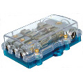 Fused power blockr 1x4Ga in/3x8Ga out gold plated